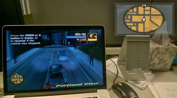 O aparelho ainda está em fase de testes e conta apenas com protótipos, mas DiGiovanni conseguiu conceber algo que pode deixar os fãs de GTA bastante empolgados. Ele utilizou um aplicativos de GPS em tempo real e o “misturou” com o mapa do terceiro título da franquia da Rockstar — ou seja, ele criou um mapa interativo.